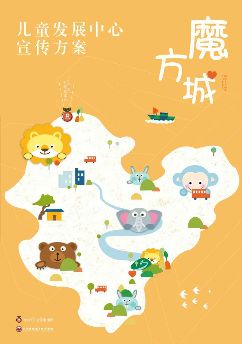 实践前期,团队前往中心实地考察,与机构教师细致交流,了解了当下机构所需以及所存在的部分问题。团队还邀请机构教师和学生家长参与调查问卷的填写,为设计品牌产品收集数据。实践后期,团队成员多次交流考察心得并将调查问卷结果进行分析,为中心做出了具有针对性的服务设计方案,配套进行了视觉形象设计和服务活动设计。针对调研和实践中发现的问题做出相应解决方案:就其宣传力度较小的问题设计了新旧媒体融合的宣传策略;针对展板褪色问题设计出了一整套符合机构文化内涵建设的展板及标语等;另针对中心配套设计了办公用品、服装、抱枕等其他文化衍生产品共计30余种,并结合前期问卷调研结果,为机构整理了一套发展方案。