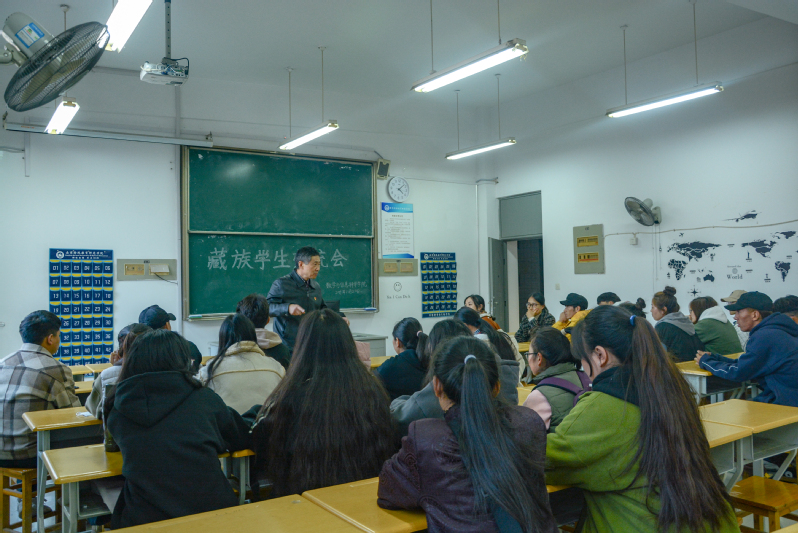 王建国书记根据以上现状进行了多方面分析,并提出了要求和希望。王书记指出我院现有藏族学生43人,占我院少数民族学生人数的43.9%,且人数比例呈逐年增长趋势,是一个非常重要的群体。西藏学生普遍因其宗教观念强、专业基础差、纪律意识淡薄等因素,导致政治意识不强、专业学习困难、思想自由散漫等问题。希望各位藏族学生能意识到这些问题,努力端正态度,树立正确的政治思想意识,不断提高自身专业技能和综合素养。王书记呼吁同学们一是要踏实好学、谦虚上进,不图虚荣、摒弃懒散;二是强调朋友在精不在多,在当前社会经验不太丰富的情况下,尽量缩小“朋友圈”;三是要擦亮眼睛保持警惕,防止被别有用心之人欺骗、利用;四是一定要树立法治意识,学法、懂法、用法,营造平安和谐的生活环境。