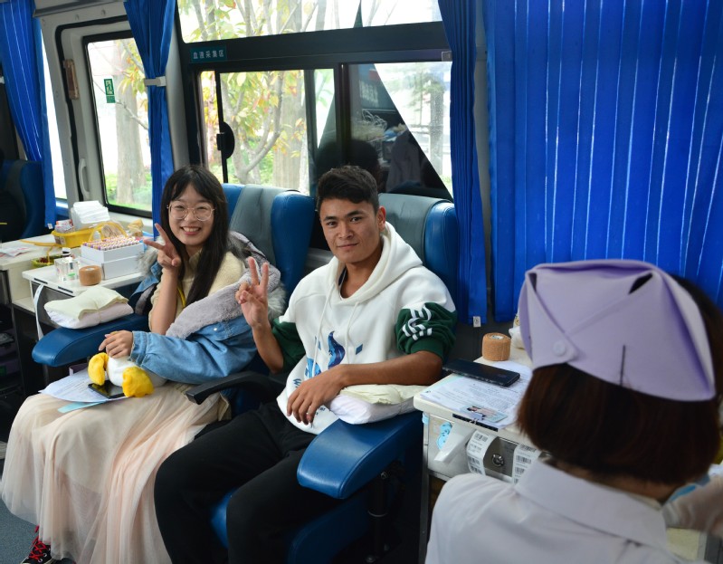 等待献血期间,同学们紧张而兴奋,其中不乏已然参加过献血活动的同学,我院一位大一新生在献血过程中表示:“能够献血救人,感到十分光荣。”辅导员樊琬老师协家人也参与到献血队伍中,并亲切的与我院学生进行交流,安抚他们紧张的情绪,用行动表达了对此次活动的支持。