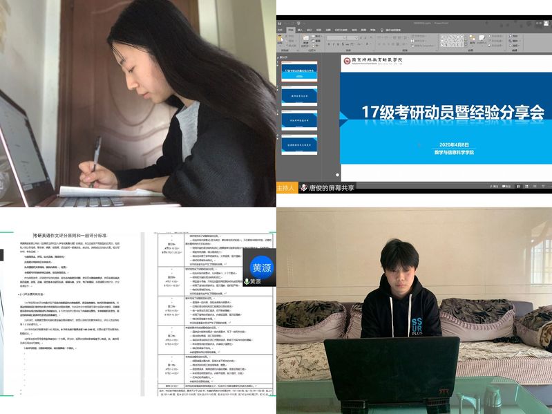 为进一步提高我院17级学生的考研热情,让同学们挖掘自身的潜能,了解考研复习技巧以及最新政策,我院于4月8日下午13:30通过“腾讯会议”在线上举行了“17级考研动员暨经验分享会”。分享会由辅导员樊琬主持,副院长张居晓、青年教师黄源、朱荣鑫、16级学生丁璐璐、马海燕以及我院17级全体同学参加了此次分享会。
