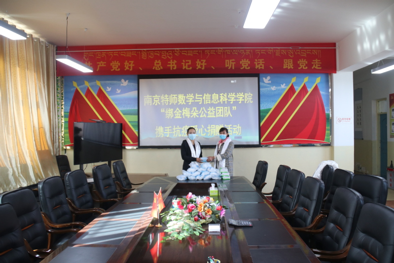 本次活动,“绑金梅朵”公益团队将800只口罩和300副手套捐赠给长江源民族学校。由于团队成员全部是我校在校大学生,没有足够资金来源,团队成员共计7名同学拿出了自己在校获得的奖学金、助学金来购买这些物资。当有人问他们,你们这次活动的初衷是什么?团队负责人斯求卓玛说:“我们捐赠这些口罩给长江源民族学校是因为她是我们的母校,想感谢母校的教育之恩,其次希望将南京特师大学生的积极、乐观和博爱的胸怀带给藏族的孩子们,鼓励他们努力学习文化知识,更好地建设自己的家乡回报社会。”她回忆到:当她站在教室向同学们诉说自己大学经历的时候,她感受到孩子们那种渴望、兴奋和羡慕的目光,对她而言,教室里“感恩教育”四个字是她精神上的食粮,滴水之恩,当以涌泉相报,正是在国家政策的扶持下,自己才能够来到南京特师,接受更好地教育。她希望这些孩子们将来都能够听党话、感党恩,用自己的实际行动回报国家和社会。