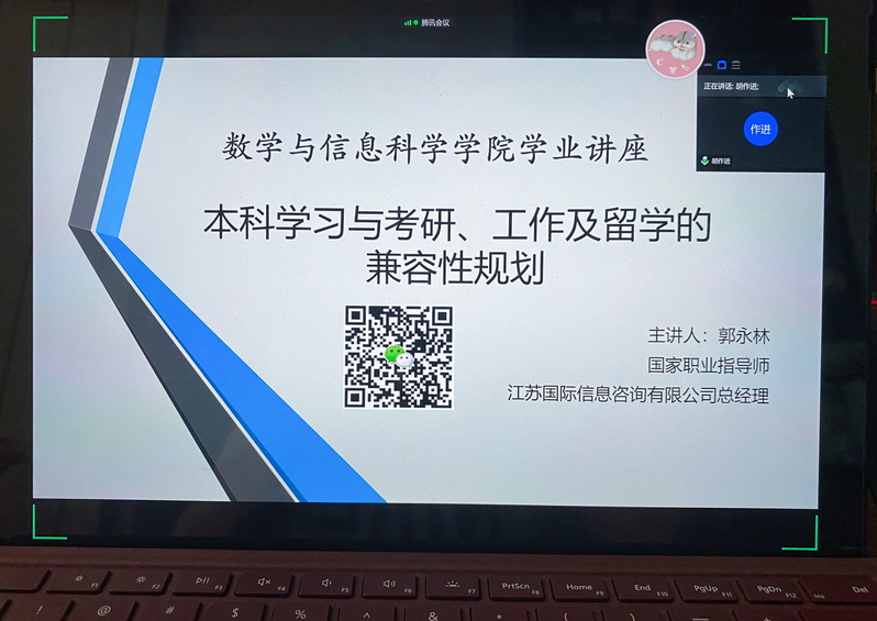 为了让同学们进一步认识本科学习与考研、工作及留学的兼容性规划,我院于7月22日下午在线上举办了生涯规划讲座暨实习宣讲会。本次活动由胡作进院长牵头,樊琬老师主持,邀请到国家职业指导师、江苏国际信息咨询有限公司总经理郭永林老师和中国电子文思海辉高校实习项目经理韩汝平老师主讲,一同参与本会的还有我院数百名同学。
