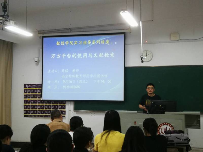 为加深大四学生对毕业论文选题的认识,提升学生使用数据平台和图书馆资源进行文献检索的能力,我院于2020年9月16日下午2点,在博雅楼2607举办了“万方平台的使用与文献检索”主题讲座。本次讲座由我院副院长张居晓主持,邀请了校图书馆技术部许诺老师主讲。我院部分专任教师以及2017级教育技术学专业全体学生共同聆听了此次讲座。