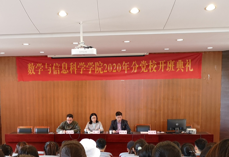 2020年11月3日下午,数学与信息科学学院2020年分党校开班典礼在114报告厅举行。校党委统战部常务副部长、组织部副部长、学校党校副校长王娟,数学与信息科学学院党总支书记李宏伟、院长胡作进,以及学院学生党支部全体委员和69名入党积极分子参加了开班典礼。