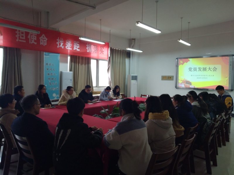 2020年12月9日下午,数学与信息科学学院学生党支部召开党员发展大会。大会由学生党支部书记李霞妹老师主持,学生党支部全体党员、发展对象的入党介绍人参加了此次大会。