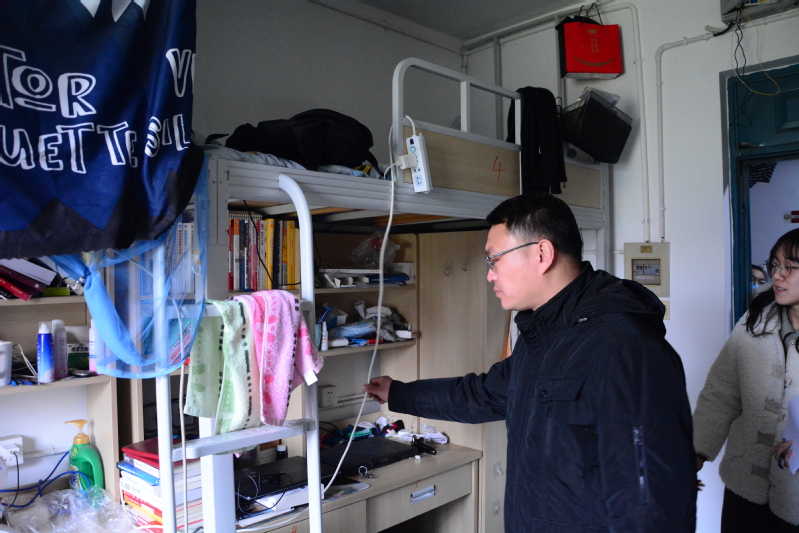 为进一步做好学生宿舍冬春火灾防控工作,帮助学生树立安全卫生意识,确保学生宿舍安全、卫生、文明、和谐,12月28日下午,数学与信息科学学院开展了宿舍安全隐患大排查暨三和”宿舍巩固月活动。数学与信息科学学院党总支书记李宏伟、辅导员樊琬,及部分学生干部组成专项检查小组,前往学生宿舍进行安全检查。