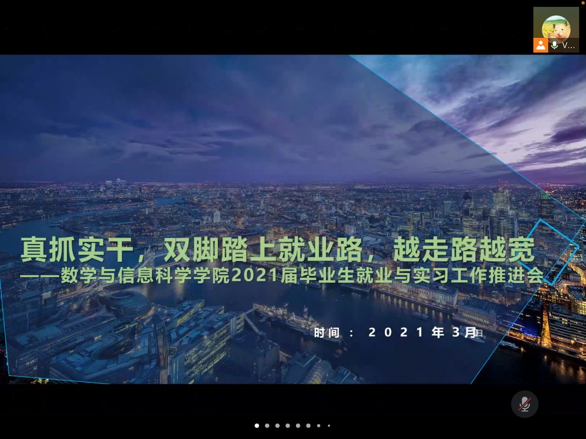 为促进更好地促进我院2021届毕业生就业工作,3月17日晚,数学与信息科学学院通过腾讯会议开展了教育技术学就业与实习工作存进会。会议由辅导员樊琬主持,院长胡作进、副院长张居晓以及2021届毕业班全体同学参加。