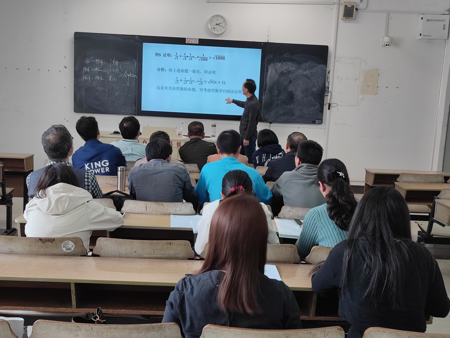 段志贵教授介绍了“一般到特殊,从特殊到特殊,从特殊到一般” 的课堂教学理念,又从课前备课,到课堂教学组织、教学设计等教学环节详细阐述了课堂设计的重要性,并用简单的题目示范如何课堂上调动学生的积极性,以及如何做好课后作业监督和指导。