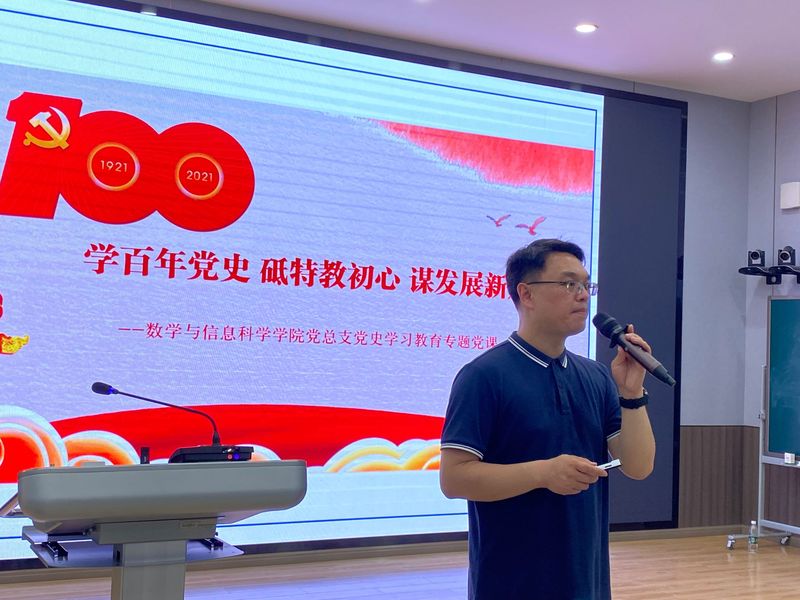 6月28日下午,数学与信息科学学院党总支书记李宏伟以《学百年党史 砥特教初心 谋发展新篇》为题,讲授党史学习教育专题党课。数学与信息科学学院学生党支部全体党员、入党积极分子、部分教师党员参与学习专题党课。