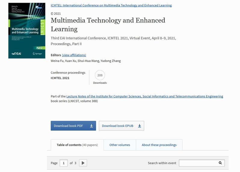 近日,数学与信息科学院多名学生参加EAI ICMTEL 2021国际会议,投稿论文陆续得到出版发表。据悉,3rd EAI International Conference on Multimedia Technology and Enhanced Learning旨在提供一个关于多媒体技术和增强学习的最新和未来视角的科学报告和辩论的论坛。