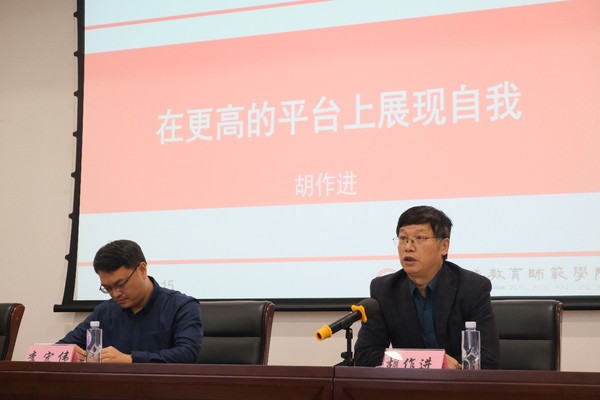 会议伊始,张国盛老师为各位新生介绍了学院党政班子成员、各系(教研室)主任、教学行政人员、辅导员等老师们的基本情况及其工作分工。会议第二项环节,由胡作进院长发言,胡院长代表全院师生对2021级新生的到来表示了热烈欢迎,并向新生介绍了我院发展概况与教学成绩等基本情况,使新生对学院有了更深的了解,胡院长表示,不同专业应有不同的专业要求,当代大学生应站在更高的平台上展现自我。