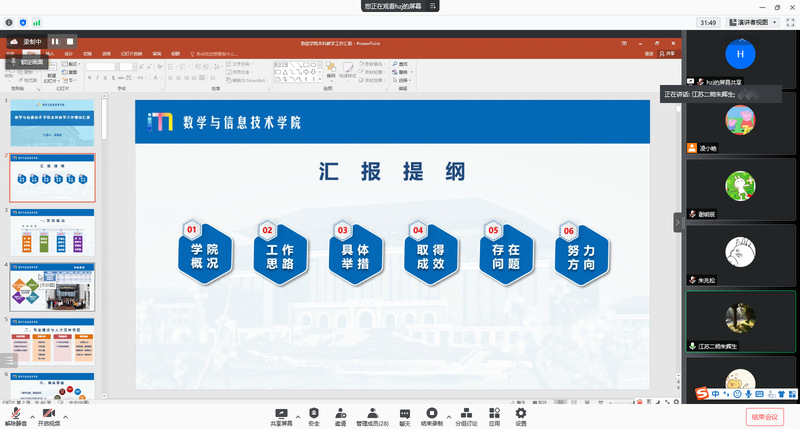 为了做好本科教学合格评估各项工作,12月3日下午数学与信息科学学院邀请江苏第二师范学院数学与信息技术学院院长朱辉生作本科教学合格评估解读讲座,我院全体教职员工通过网络参加了讲座。会议由院长胡作进主持。