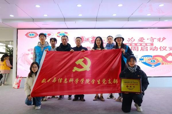 数学与信息科学学院学生党支部书记樊琬、组织委员丁力、宣传委员张国盛及部分学生代表出席参加了由江苏血液中心、中国狮子联会江苏代表处主办的“红色行动,为爱守护——为献血喝彩,向生命致敬”无偿献血宣传周启动仪式。
