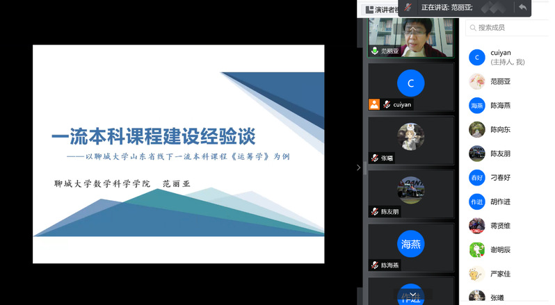 为推进我院“一流本科课程”建设,12月27日下午,数学与信息科学学院邀请聊城大学AV中文字幕在线观看副院长范丽亚教授开展一流本科课程建设经验谈的线上分享会,院长胡作进教授主持分享会,学院全体教师参加了会议。