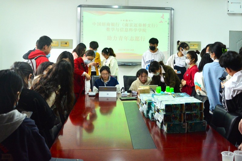 为响应江苏省青年志愿者协会号召,助力大学生青年志愿服务活动更好地开展,3月14日下午,数学与信息科学学院携手招商银行南京迈皋桥支行,开展助力青年志愿行服务活动。