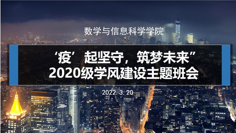为了加强学风建设,营造更加浓厚的学习氛围,深入推进“学在数信”品牌建设,数学与信息科学学院2020级各班于3月14日-3月20日期间,通过线上线下结合的方式召开了“筑梦未来,不负韶华”主题班会,班会由辅导员樊琬老师,全体2020级学生参加班会。