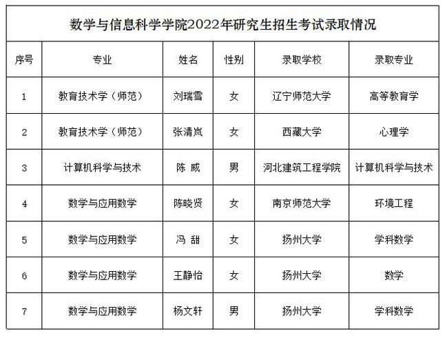 考研喜报:祝贺数学与信息科学学院2022届七位学生成功考取硕士研究生