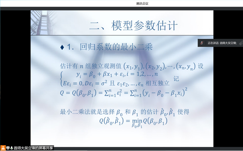 2022215日晚上7点,首都师范大学的吴立锋教授应邀为数信院的相关老师与学生带来了一场精彩的数学建模竞赛线上讲座。吴教授是数学建模方面知名的指导教师,带来首都师范大学获得过诸多国家级和国际级的大奖。