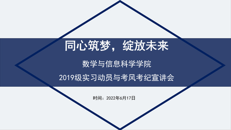 为将专业知识与实践有效结合,扎实推动学院学生实习工作。6月17日,数学与信息科学学院召开“同心筑梦、绽放未来”2019级实习动员与考风考纪宣讲会。学院党总支副书记丁雯,副院长张居晓、陈仲珊和2019级全体学生参加。会议由数学与信息科学学院2019级辅导员李唐萌主持。