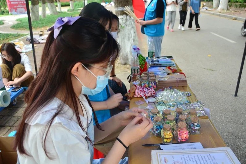 本次公益募捐售出的物品有一部分来自于我院桔灯创“益”公益设计服务中心根据孤独症儿童绘画作品独家设计的产品,学院将售卖所得钱款全部捐出,用于睿泽障碍人士服务中心孤独症康复项目。一件件精美的手工艺品摆满桌面,琳琅满目,它们既是孤独症患者内心情感的表达,也是劳动价值的体现。