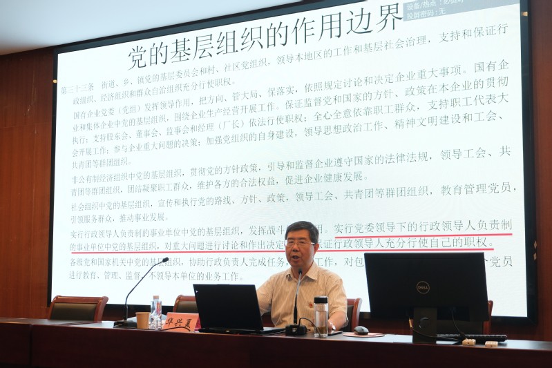在两次的授课中,华校长不但旁征博引,从历史和现实发展等视角,对《中国共产党章程》进行了全面系统、深刻透彻的讲解,阐述了学习《中国共产党章程》的重要意义;还通过运用典型教育等方法,让学院党员上了一场优质党课的同时,更是参加了一次主题教育、接受了一场党性教育。(文/丁力 李宏伟 图/丁力 周世栋 审核/胡作进)