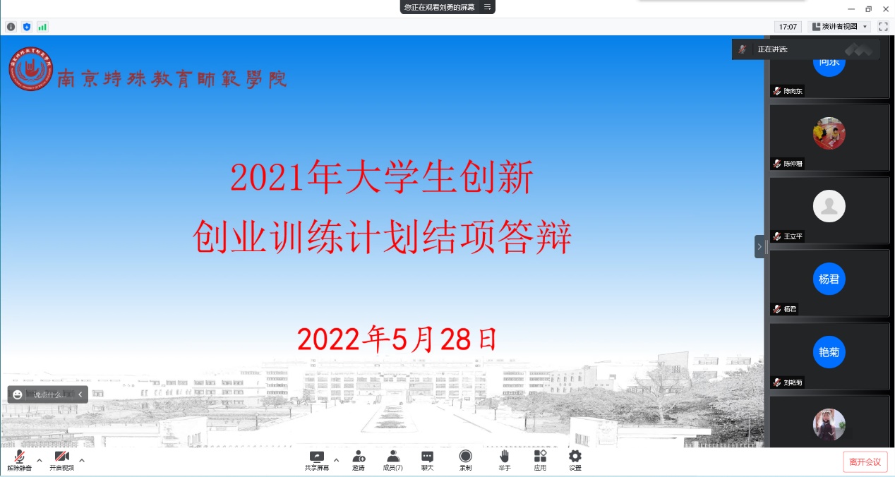 5月28日上午,我院2021年立项的大学生创新创业训练计划举行线上结项答辩。此次结项答辩共有“互联网+“环境下江苏非遗的数字化保护现状调查及对策研究”等13项项目进行答辩。数学与信息科学学院副院长陈仲珊博士,教育技术系主任刘艳菊教授,以及陈向东教授、王立平教授、刘勇教授、张胜伟老师、杨君老师担任评委。