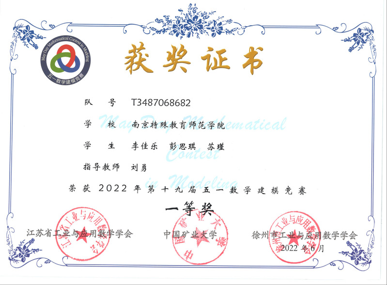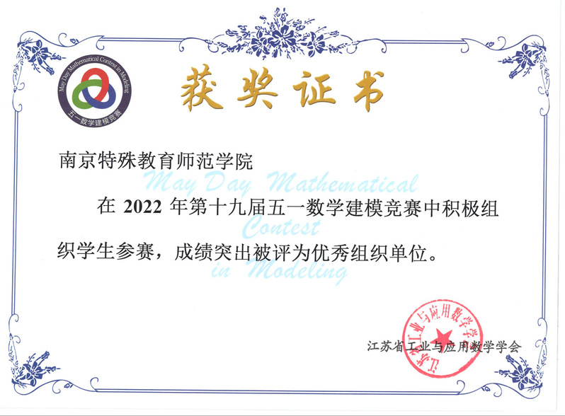 2022年第十九届五一数学建模竞赛于5月1日至3日举行,共有6648支代表队报名参赛,收到有效论文5825篇。共评选出一等奖291篇,二等奖877篇,三等奖1457篇。我校共选拔出22支队伍参加此次竞赛,通过精心准备和激烈角逐,共获得一等奖1项,二等奖1项,三等奖8项,总获奖率45.45%,首次参加该项赛事即取得佳绩!此外,我校在本次竞赛中组织学生参赛,成绩突出也被评为优秀组织单位。