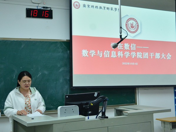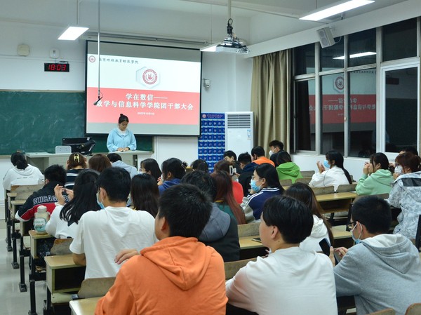 10月4日晚,数学与信息科学学院召开团学干部大会。辅导员樊琬、李唐萌和数学与信息科学学院全体团干部参加本次会议。