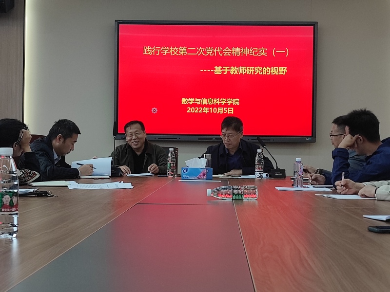 学校第二次党代会结合学校发展的实际,为全校教职员工描绘了一个光明的蓝图,指明了未来五年乃至更长时期的奋斗目标。为深入学习贯彻学校第二次党代会精神,数学与信息科学学院遵循“丰富认知”----“融通情感”----“内化践行”的总体思路,通过创新学习方式方法,逐步引导全体教职员工将党代会精神有效融入到实际工作中去。
