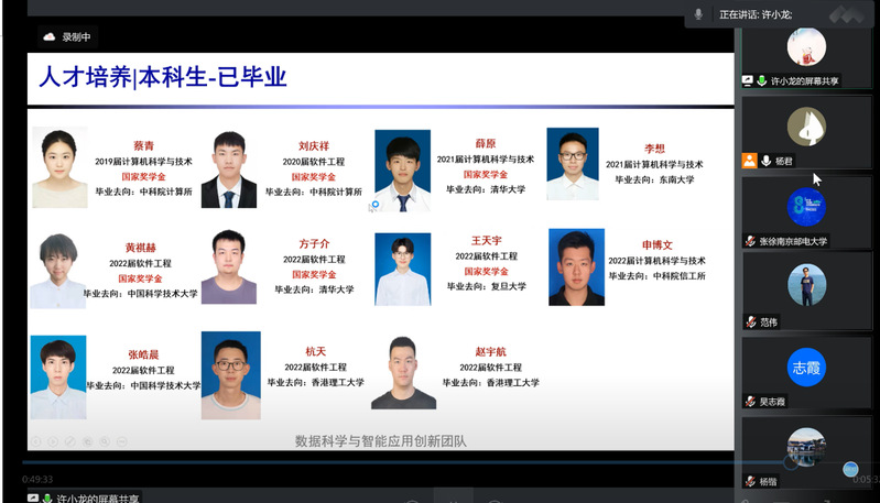 为了加强数学与信息科学学院数据科学与大数据技术专业的人才培养。2022年11月15日晚,数据科学与大数据技术专业通过在线视频会议的形式召开了专业建设人才培养方面的研讨会。南京邮电大学教务处副处长兼创新创业教育学院副院长张徐教授、南京理工大学泰州学院教务处处长范伟教授、南京信息工程大学软件学院许小龙教授等校外专家应邀出席,我院大数据教研室教学主干老师同事参与了本次研讨。