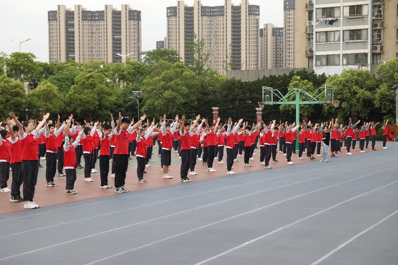 在大课间,同学们在主席台旁观摩了同学们做操。学生们训练有素的排队进入操场,做操动作整齐有序,所配的音乐也是恰到好处,让人听了心情十分激情昂扬。