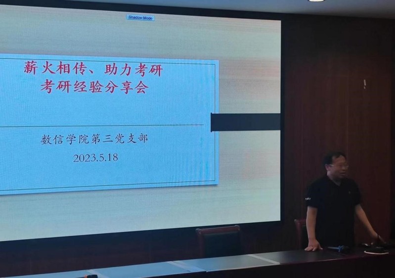 2023年5月18日,数学与信息科学学院教师第三党支部在博韵楼114举行“薪火相传 助力考研”考研经验分享主题党日活动。活动由教师第三党支部书记王立平教授主持。第三党支部全体党员与有志于考研的学子们共同参加了此次活动。学院党总支书记李贵希、副院长陈仲珊等同志也应邀出席了本次活动。