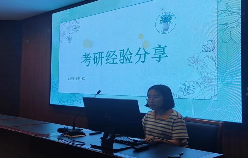 接着,两名考研成功的学生朱剑心和龙莹莹同学应邀作了考研经验分享,极大的鼓舞了在座的同学们,激发了他们的信心与动力。她们分别向同学们介绍了数学、英语和专业课的备考重点、复习方法和解题技巧,无论是数学、英语、政治还是计算机相关专业课,每个专题分享都令学弟学妹们受益匪浅。同学们积极提问、互相交流,激发出思维的火花,共同探讨了备考的具体步骤。她们还提醒学弟学妹们要坚持每天学习,动态调整复习进度以及如何合理安排时间来兼顾考研和毕业实习等方面的经验,并鼓励同学们相信自己,坚持不懈地追逐梦想。