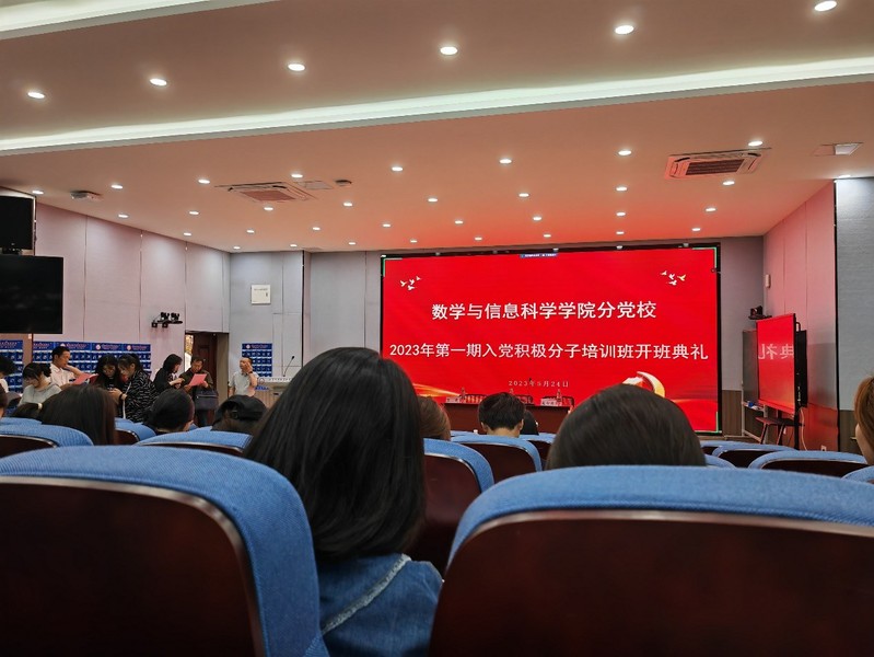5月24日下午2点,数学与信息科学学院2023年第一期分党校开班典礼在博远楼106举行。校党委组织部副部长庞宙华、数学与信息科学学院党总支书记李贵希、党总支副书记丁雯,以及学院全体辅导员和71名入党积极分子参加了开班典礼。会议由党总支书记李贵希主持。