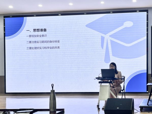 陈仲珊副院长详细阐述了实习的目的与意义,实习任务安排、实习期间的注意事项等内容,希望同学们能够珍惜实习机会,深入教学一线,学得真本领。