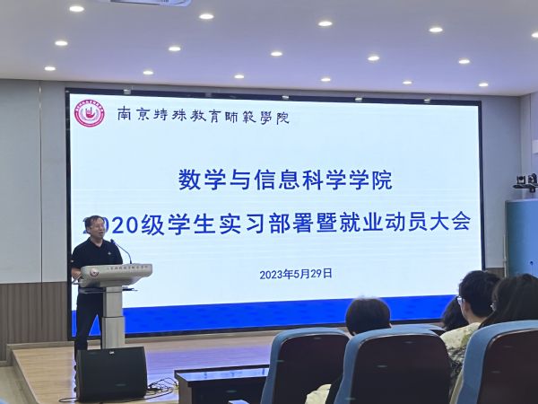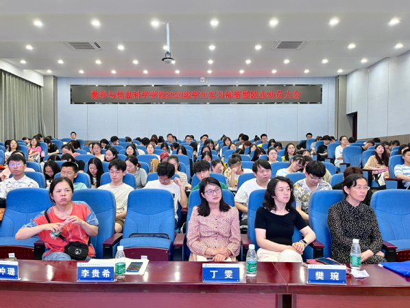 为落实人才培养方案,扎实推动2020级师范生实习实训工作,帮助学生从学涯顺利过渡至职涯,5月29日数学与信息科学学院召开2020级师范生实习部署及就业动员大会。数学与信息科学学院党总支书记李贵希,院长王兵,党总支副书记丁雯,学院副院长陈仲珊以及2020级全体师范生参加了此次大会。会议由数学与信息科学学院学工办主任樊琬老师主持。