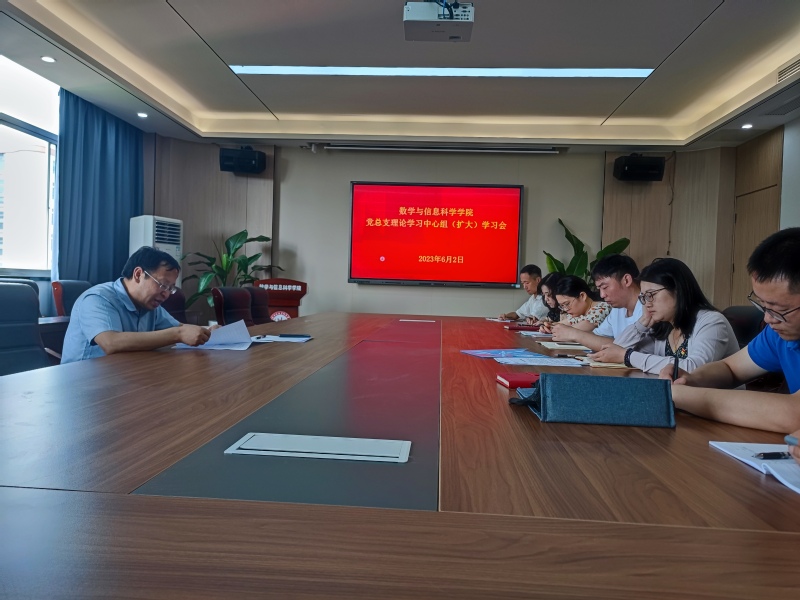 6月2日下午,数学与信息科学学院召开党总支理论学习中心组(扩大)学习会。学习研讨“加快建设教育强国,为中华民族伟大复兴提供有力支撑----习近平在中共中央政治局第五次集体学习时的讲话精神”。会议由党总支书记李贵希主持。在校党总支委员、院领导、各党支部书记参加会议。
