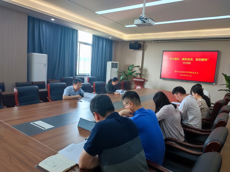 为深入有效开展学习贯彻习近平新时代中国特色社会主义思想主题教育, 6月1日下午,数学与信息科学学院召开党总支理论学习中心组(扩大)学习会暨“牢记嘱托、感恩奋进、走在前列”大讨论。学院党总支全体成员、科级以上干部参与了讨论会,会议由党总支书记李贵希主持。
