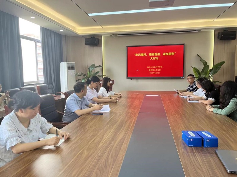 6月7日下午,数学与信息科学学院教师第二党支部开展了“牢记嘱托、感恩奋进、走在前列”大讨论。会议由教师第二党支部书记付荣主持。