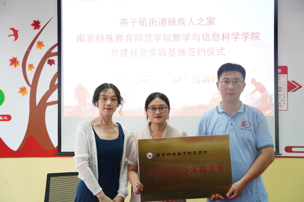 会上,数学与信息科学学院与燕子矶残疾人之家代表共同签订《南京特殊教育师范学院大学生社会实践基地合作协议书》,并举行了揭牌仪式。