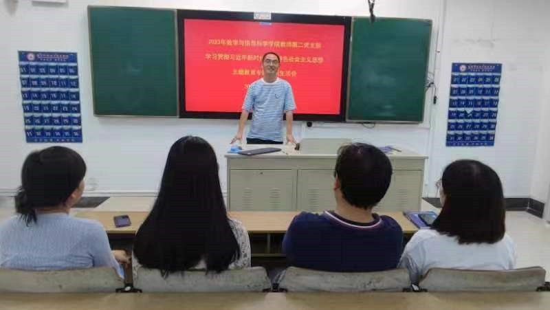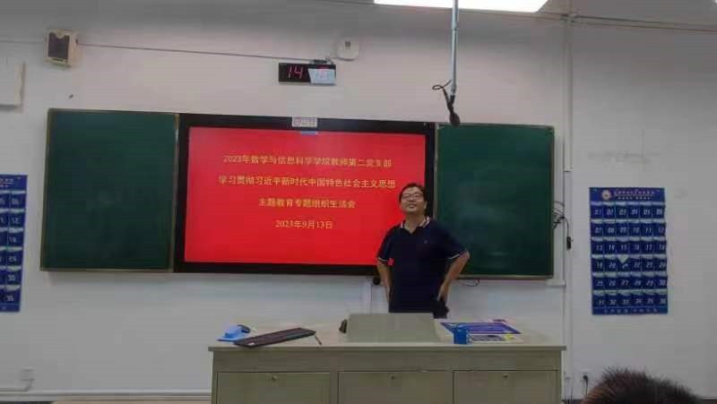 9月13日下午,数学与信息科学学院教师第二党支部在博雅楼2612会议室召开学习贯彻习近平新时代中国特色社会主义思想主题教育专题组织生活会。会议由党支部书记付荣主持,支部全体党员同志参加了会议。