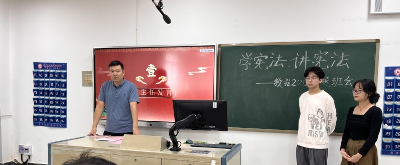 为深入学习贯彻党的二十大精神和习近平法治思想,落实学校推进 “八五”普法规划和宪法学习的要求,培育青年大学生学法、信法、用法的优良品质,10月8日下午数学与信息科学学院数据科学与大数据技术2201班隆重召开“学宪法、讲宪法”主题班会。学校党委常委、副校长华兴夏莅临指导,学院党总支书记李贵希、院长王兵、副书记丁雯、副院长陈仲珊以及辅导员和班主任一同参加了主题班会。