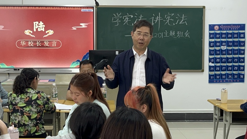 华兴夏副校长在点评环节,充分肯定了主题班会的意义、内容和形式,他指出,学宪法、讲宪法是普法的重要环节,通过主题班会进行有益探索是十分必要的,可以推广甚至可以形成系列活动。华兴夏副校长,给大家分享了自己学习和研究宪法的经历,并用开阔的视野阐述了我国宪法的诞生、变化和宪法所肩负的历史使命。他强调,宪法是一切事业的基础,宪法是治国安邦的总章程,也是公民立身行事的总依据。宪法的制定、修正对于国家、社会、个人前途和命运影响深远。