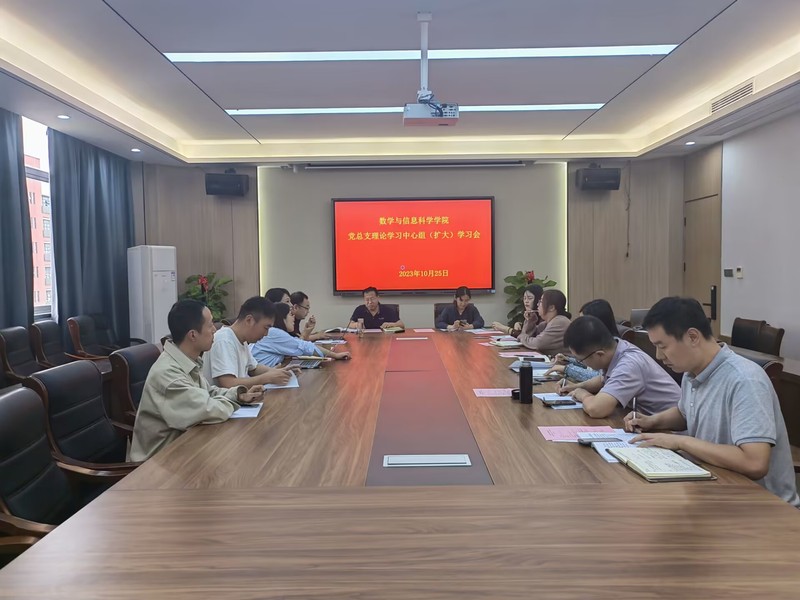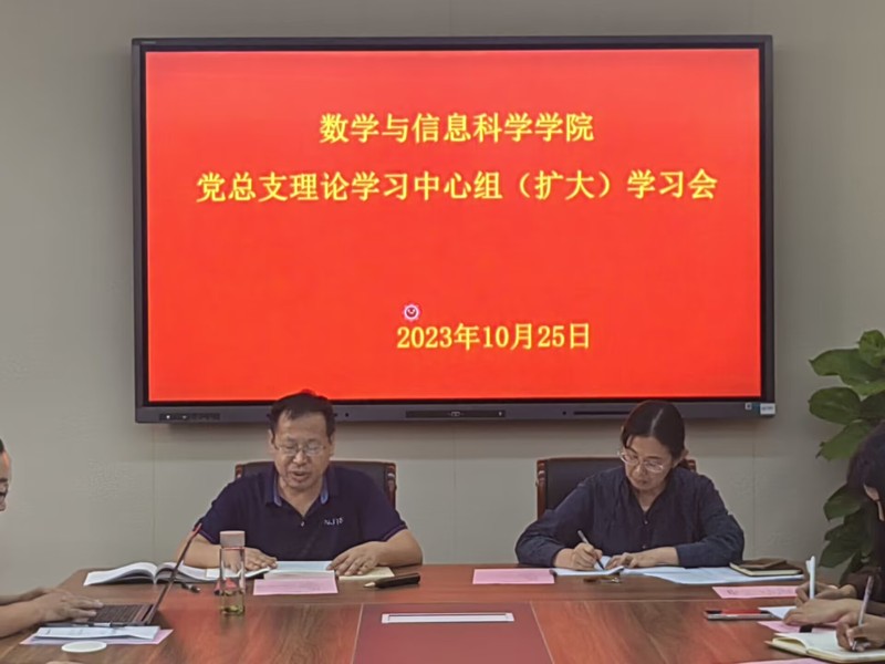 10月25日下午,数学与信息科学学院在博雅楼3601会议室,召开党总支理论学习中心组(扩大)学习会,学院党总支理论学习中心组成员、学院副处级以上领导干部、师生各党支部书记参加了会议,会议由党总支书记李贵希主持。