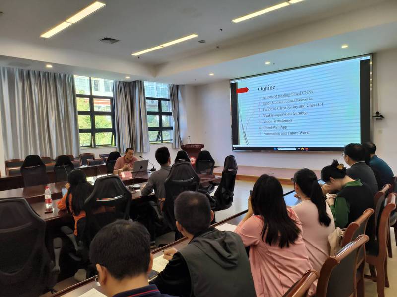 张教授是作为2019-2023年Clarivate全球高被引科学家,合著400多篇同行评审文章,其中有超过60篇ESI高引论文和6篇ESI热门论文。他担任了Neural Networks、IEEE TTS,IEEE TCSVT,IEEE JBHI等副主编,曾担任60多个国际会议(包括20多个IEEE或ACM会议)的大会级别主席。在给我院专业教师的报主要告围绕医学图像分析的高级信息科学与技术进行,旨在提升大家的学术视野,展开面对面的学术交流。张煜东教授介绍了研究小组在医学图像分析方面的信息科学和技术的工作和进展,尤其是深度学习及其重要网络的研究和应用。张教授的报告分享了很多新思想、新技术和新方法,开阔了大家的视野,并对年轻教师如何做好科研给出了有益的建议。