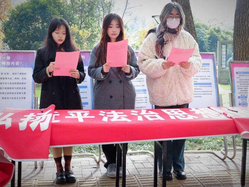 此次宪法宣传活动的成功开展不仅丰富了同学们的法治知识,让同学们深刻感受到法治的魅力、更好地理解了宪法的重要性,也为法治校园文化的建设贡献了一份力量。法治宣传活动不仅是一次知识的传递,更是对法治观念的潜移默化的培养,也是为学校的法治建设助力。(文/邓威娜 杜文图/史欢 郑晓炎 王晔 编辑/杜文 审核/李贵希)