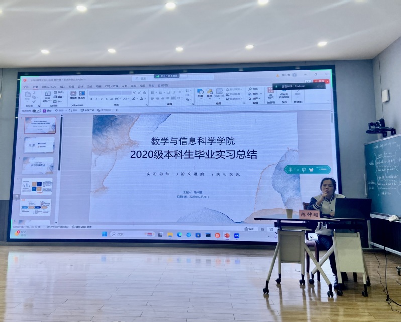 12月28日下午,数学与信息科学学院在博远楼106召开2020级实习总结大会。学院党总支书记李贵希、副书记丁雯、副院长陈仲珊、学工办主任樊琬、教师王翔宇出席本次会议,2020级全体实习生参加。会议由教学科研办公室主任杜文主持。