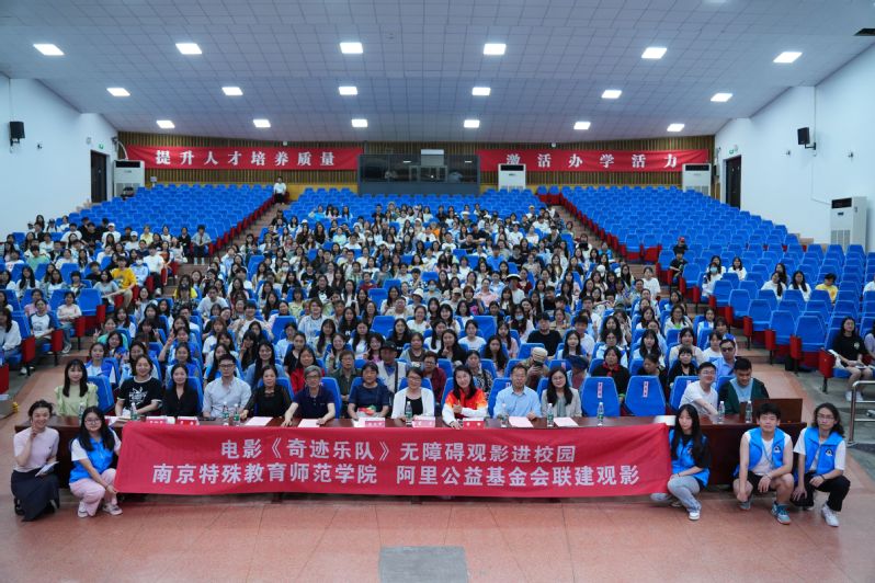 在5月19日全国助残日到来之际,数学与信息科学学院联合校党委宣传部、校团委,携手阿里巴巴公益基金会,在大学生活动中心举办了“科技助残,共享美好生活”无障碍公益电影点映活动。校党委宣传部、校团委、数学与信息科学学院、江苏省残疾人文体中心、南京市残联、南京市栖霞区残联、南京市盲协、南京市栖霞区盲协、阿里巴巴公益基金会、多家新闻媒体,以及《奇迹乐队》电影制片方代表和学校师生代表共800余人参加了活动。学校党委副书记谭忠出席了本次活动。