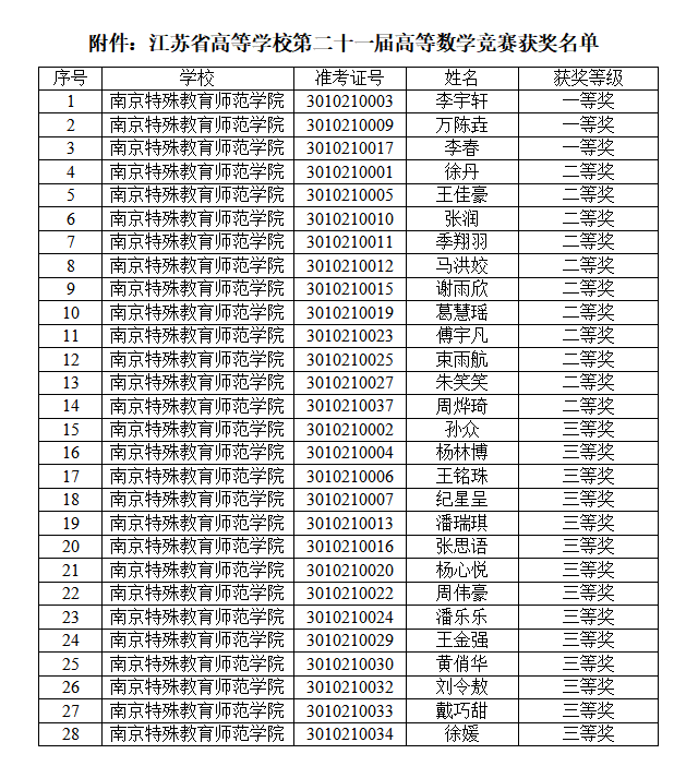 喜讯:我校在江苏省高等学校第二十一届高等数学竞赛中喜获佳绩