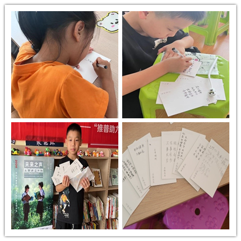 “用普通话书写温情”明信片祝福语活动,孩子们拿起笔,用稚嫩却认真的字迹,在明信片上写下对家人、朋友的真挚祝福。这些用普通话书写的文字,如同桥梁一般,连接着心与心的距离,传递着爱与温暖。完成书写的孩子,还能换取一张可爱的卡通明信片,作为自己努力的见证。